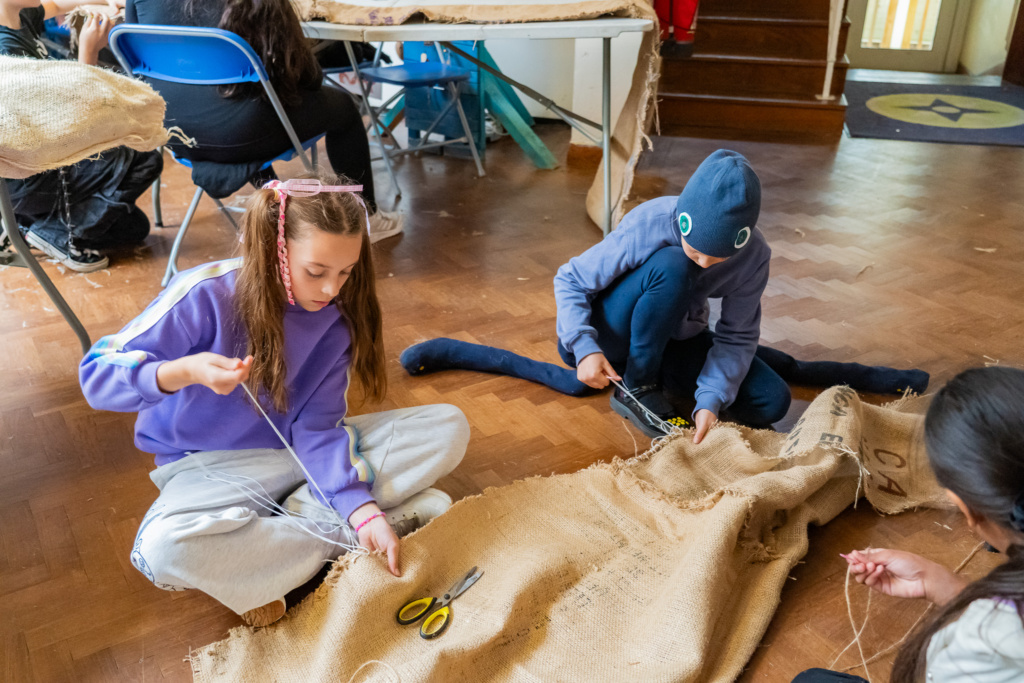- Year 6 (Geography & Art): Pupils linked the giant octopus project to global geography. Using coffee bean sacks (supplied by a local coffee shop), they discussed the origin of the beans (Ethiopia) before tackling the challenge of sewing and stuffing the sack material to create enormous, eight-legged art.