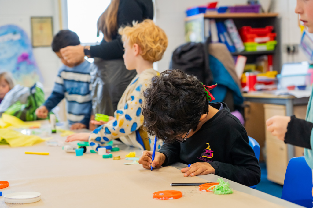 - Year 2 (Art & Music): Pupils created a huge, whole-year group underwater frieze using various recycling materials. They also enthusiastically performed the Beatles’ classic, ‘Octopus’s Garden‘.